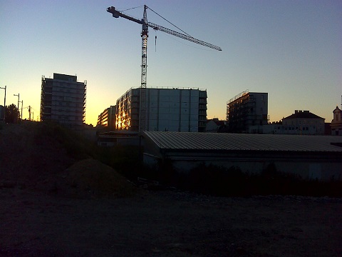 Eigentlich sollten die Wohnungen fertig sein? | Baustelle mit untergehendem Sonnenlicht |