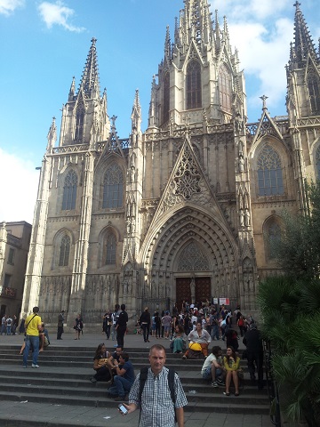 Vor der Kathedrale in Barcelona |