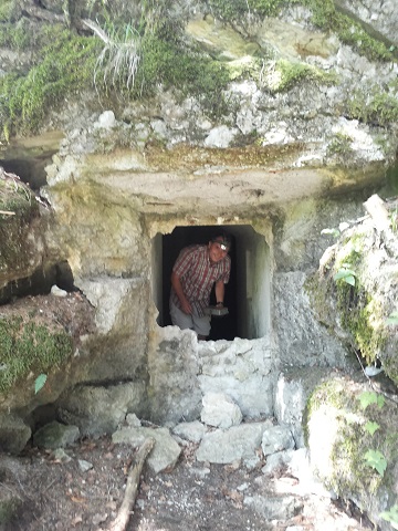 So machte ich mich auf den Weg mit Stirnlampe und Taschenlampe in das dunkle Verlies und suchte erstmal nach dem Cache. Irgendwann war dieser gefunden und dann gings an die Aufgaben. Die Stiegen zu zählen war nicht so das Problem, auch nicht die Eingänge aber mit den MG Plätzen hatte ich so mein Problem, so konnten wir auch nicht das Schloss öffnen. Nochmal rein in den Bunker, dann war es auch mir klar, hatte wohl falsch geleuchtet